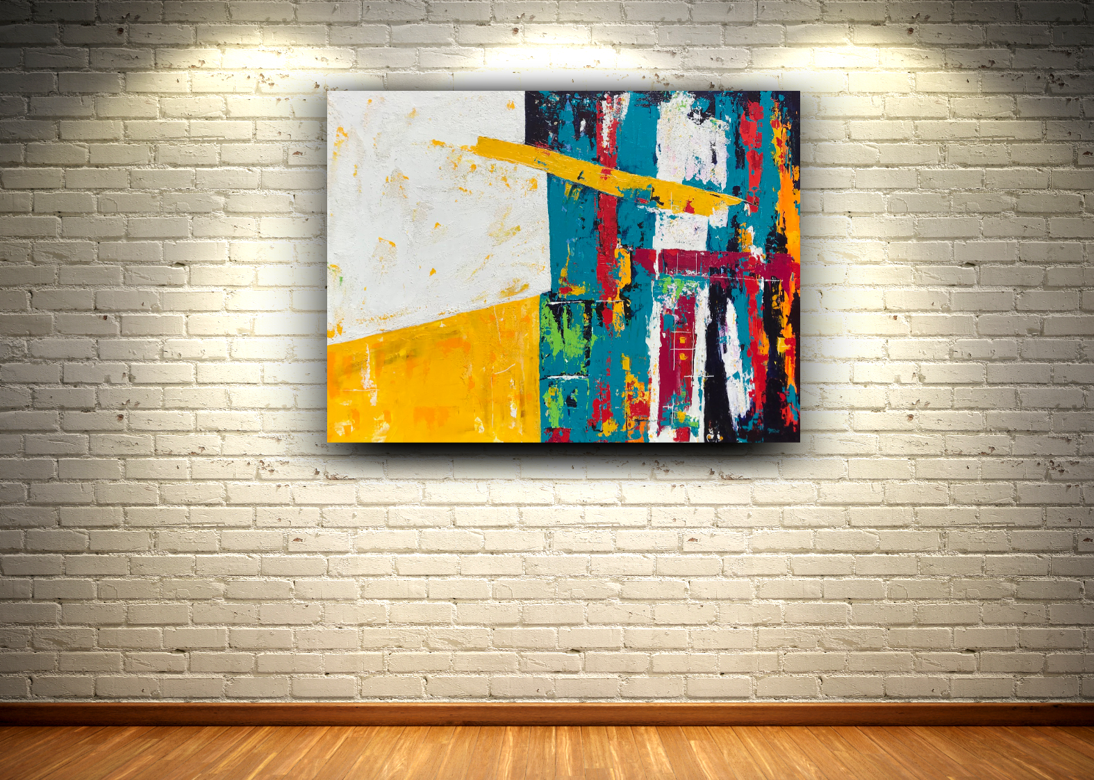 Cette oeuvre abstraite représente les reflets d’un environnement urbain jusqu’aux reflets subtils de notre quotidien. Rêver d’ériger une ville idyllique à la fois, audacieuse, surprenante et vibrante. Percevoir des adresses qui s’estompent pour simplement s’y perdre et s’y ressourcer. L’aspect granuleux réfère à la texture des sols, les valeurs s’enracinent et les routes s’éclatent d’idées. Les édifices, la nuit paraissent miroiter une place publique où l’art de vivre préconise les couleurs d’un environnement sans pollution. La lumière s’accroche à cette impression des sols mouillés et il ne reste que le désir de s’y promener à la lumière du jour.