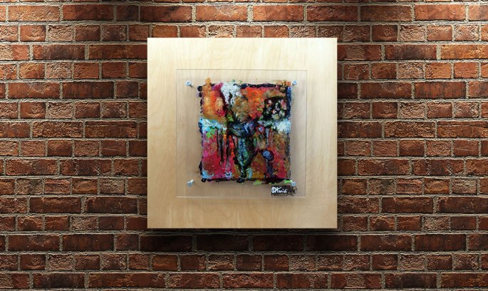 « Concrete Team » draws its inspiration from the French expression « C’est du béton » (Literally: “This is concrete”), meaning a ‘solid’ concept. This idea is rethought and transformed – the gray concrete-like texture of the wood canvas evokes this matter. The colorful cyclists emerge together from the concrete; a solid and fearless team that surpasses at all challenges.