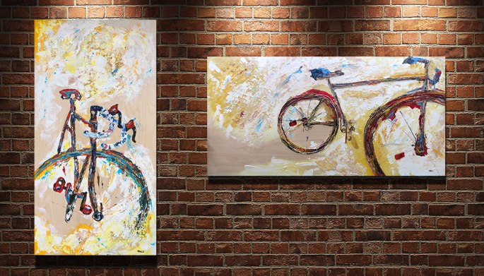 “Propulsion humaine” est une oeuvre qui éclabousse et qui renverse les rôles. C’est un tableau qui transpire et qui expose l’importance de son allié. Imaginer un vélo de course s’exprimer et ressentir tout son corps mécanique vibrer; être à bout de souffle et voulant se surpasser. Imaginer une pluie de satisfaction intérieure qui se transforme en sueur, son métabolisme qui surchauffe et qui fait fondre sa charpente. Un vélo fusionnel qui rêve de sa prochaine course autant que le cycliste qui en prend soin. Écouter-le…