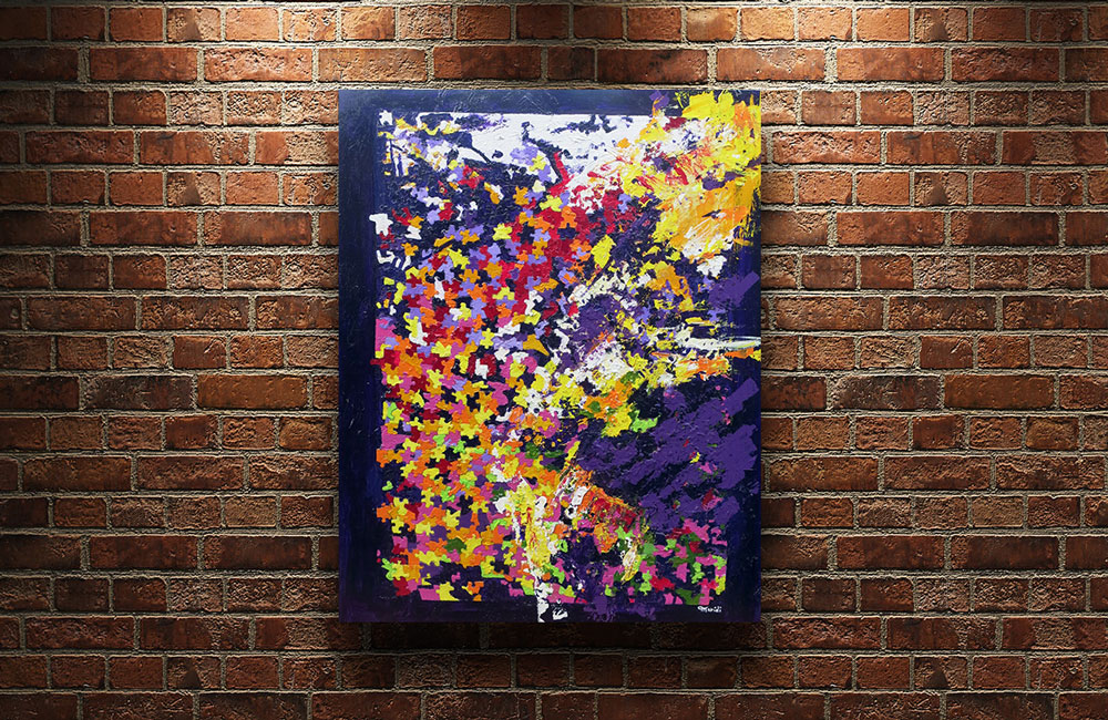 L’être humain avec ses défis et ses rivalités. Les encrages au dos sont des chaines variables et parfois indissociables au matérialisme. Le regard s’éloigne, l’avancement et l’évolution des pièces détachés finissent par s’effriter. Avec une légèreté dans l’âme, le personnage redevient fluide et mobile.