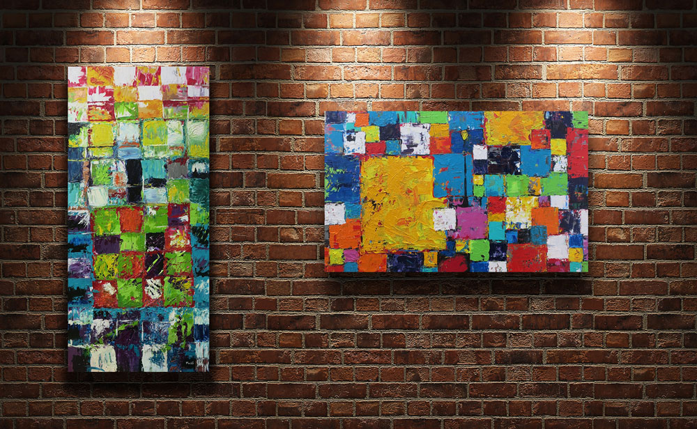 Des carrés qui ne sont pas parfaits, des carrés qui deviennent rectangles, des textures qui se gonflent, des textures qui s’effacent, des couleurs qui s’animent et qui veulent dépasser les frontières. La simplicité d’être c’est accepter les couleurs de ses pensées. « Carrément vertical » est l’émergence d’une liberté encadrée, diluant ses cadres, et pigmentant un détachement en voie de transformation. Se penser libre sans l’être est une vie fantôme en dessous d’une ossature de coloris.